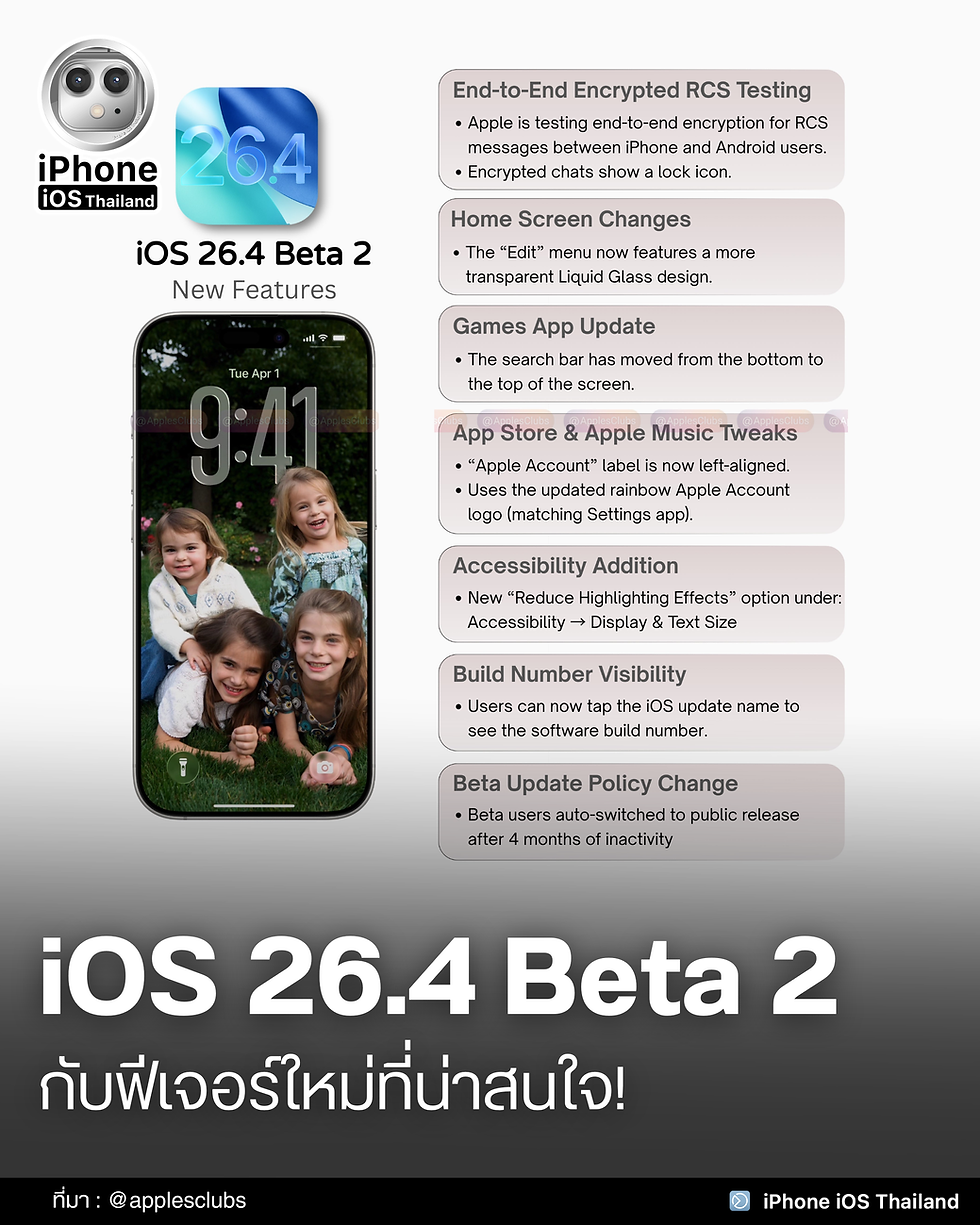 iOS 26.4 Beta 2 iPhone iOS Thailand3 วันที่ผ่านมายาว 1 นาทีกับการเปลี่ยนแปลงที่น่าสนใจ 👀📱ขอบคุณข้อมูลจาก : @applesclubsเรียบเรียงข้อมูล by Funshine#Apple #iPhone #ios #ข่าวAppleล่าสุด #ข่าวApple#iphoneiosthailand