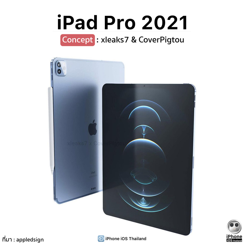 มีข่าวมากมายสำหรับ iPad Pro รุ่นใหม่ที่จะเปิดตัว ล่าสุดได้มีภาพคอนเซ็ปจาก xleaks7 และ CoverPigtou ปล่อยออกมา ซึ่งจะเป็นรูปทรงขอบเหลี่ยมคล้าย iPad Air รุ่นที่ 4 ที่เปิดตัวเมื่อไม่นานมานี้ และมีข่าวว่าจะเปิดตัวช่วงเดือน มีนาคม ที่จะถึงนี้